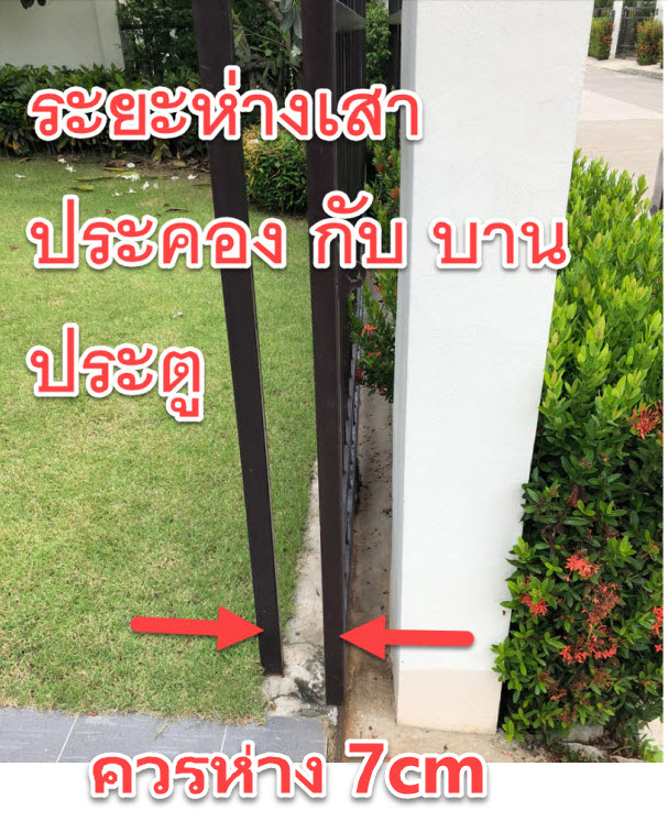 10. ระยะห่างระหว่าง เสาประคอง กับ ประตู ควรห่าง 7 cm