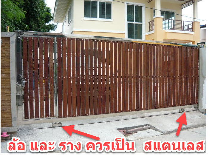 1. ล้อประตูควรเป็นแบบล้อคู่ ด๊อกแด๊ก และควรมีเพียง 2 จุด เพราะถ้ามากกว่านั้น ล้อจะขัดกันเอง และหากต้องการติดประตูรีโมท ให้ทำหางปลางล่าง ตอนที่ทำประตูไว้เลยยาวซัก 30 เซนติเมตร และ ควรเป็นสแตนเลส เนื่องจากไม่เป็นสนิม