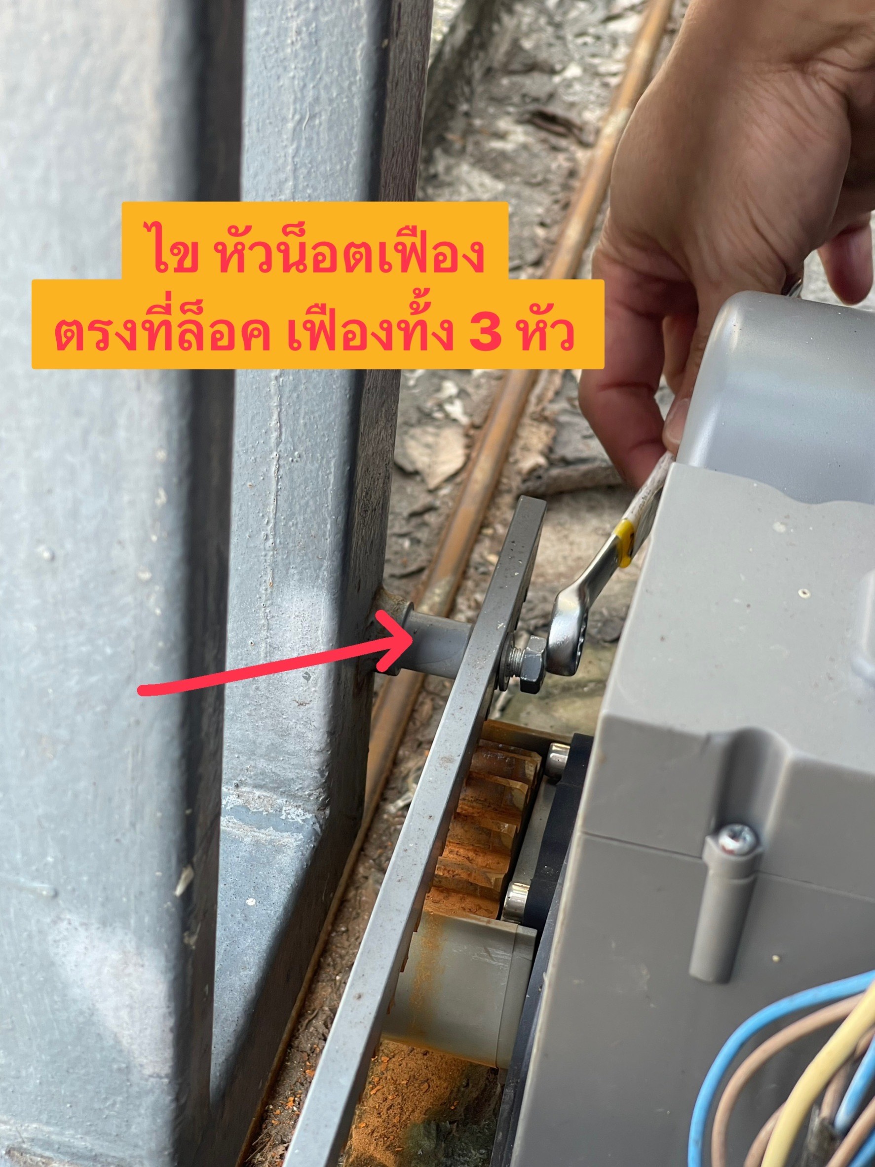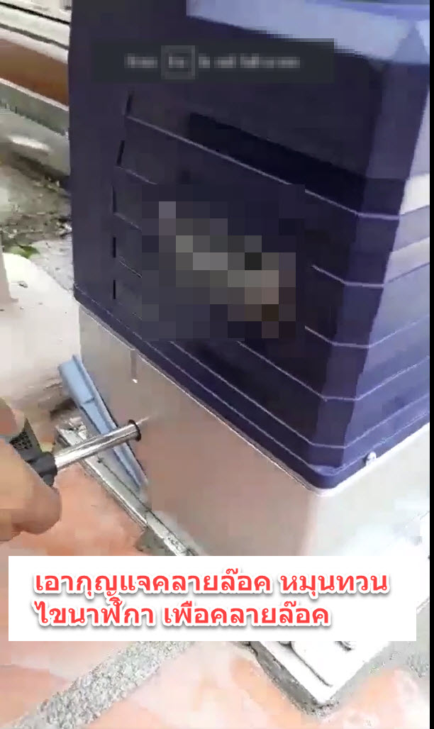 จากนั้น นำกุญแจ ไขมอเตอร์ ตามภาพ. (รุ่น DC มีแบตสำรอง)